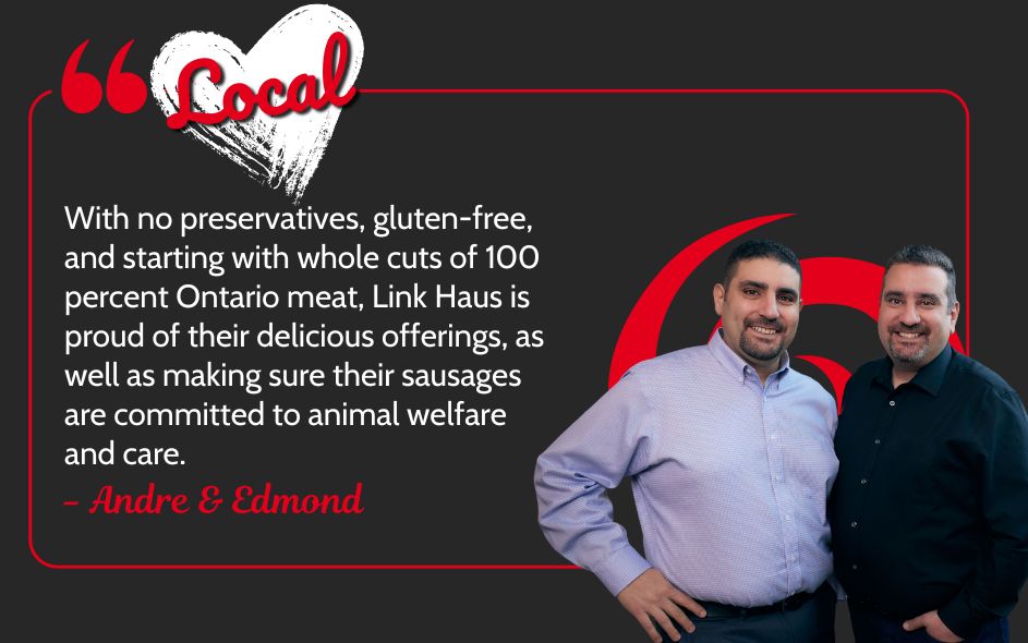 With no preservatives, gluten-free, and starting with whole cuts of 100 percent Ontario meat, Link Haus is proud of their delicious offerings, as well as making sure their sausages are committed to animal welfare and care.