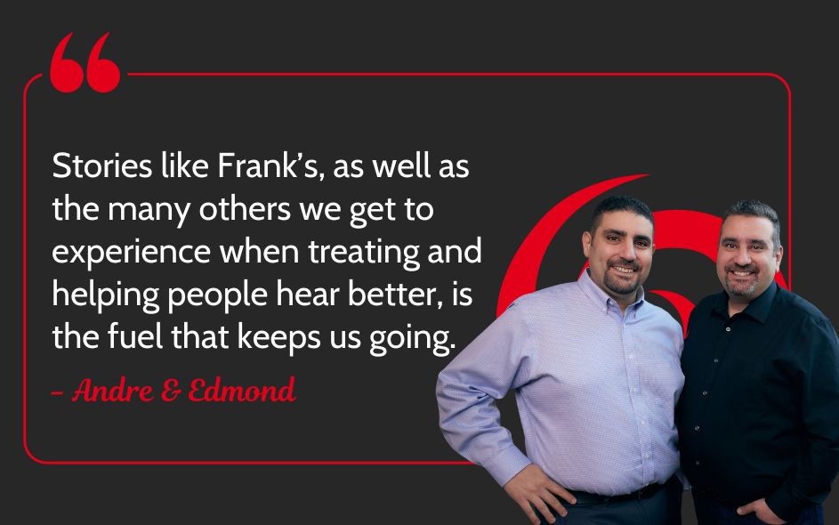 Stories like Frank’s, as well as the many others we get to experience when treating and helping people hear better, are the fuel that keeps us going.
